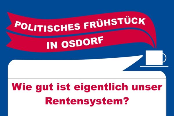 Wie gut ist eigentlich unser Rentensystem? Kommen Sie vorbei zum politischen Frühstück, wo wir uns über aktuelle politische Problemen austauschen und ins Gespräch kommen können. Alle sind herzlich eingeladen!